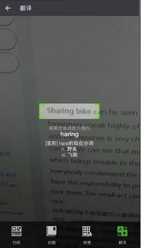 現在打開(kāi)微信(邯鄲微信開(kāi)發(fā))掃一掃不再是只能翻譯單詞。點(diǎn)擊翻譯后,掃描頁(yè)面就變成全屏的,還添加了一個(gè)拍照的按鈕。點(diǎn)擊拍照按鈕之后,它就開(kāi)始掃描整個(gè)頁(yè)面上的單詞。