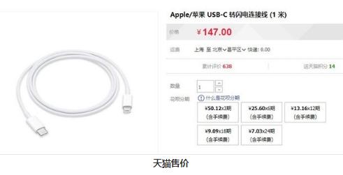 現在官方的USB-C to Lightning數據線(xiàn)在天貓售價(jià)147元,而支持PD協(xié)議的充電頭可以購買(mǎi)第三方的,比如小米的45W快充頭僅需99元,搭配蘋(píng)果官方線(xiàn)就可以實(shí)現快充。還有最近火熱的坤興27W充電頭僅需60多元,支持多種快充協(xié)議。等第三方MFi企業(yè)研發(fā)出USB-C to Lightning線(xiàn)之后,購買(mǎi)一套快充的價(jià)格就更便宜了。