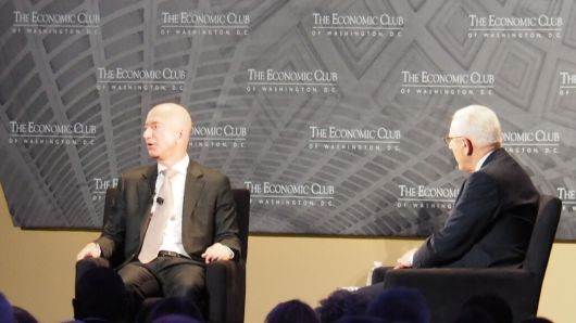 貝索斯在回答華盛頓經(jīng)濟俱樂(lè )部主席、凱雷集團聯(lián)儲創(chuàng )始人大衛-魯本斯坦的提問(wèn)時(shí)表示:“答案非常簡(jiǎn)單,我們將在年底前公布決定。”