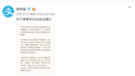 10 月 10 日上午消息,支付寶在其官方微博發(fā)布關(guān)于蘋(píng)果手機的安全提示,稱(chēng)監測到部分蘋(píng)果用戶(hù) ID 被盜,由此帶來(lái) ID 綁定支付工具遭到資金損失。