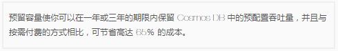 最后,預留容量模型可以降低成本,特別是在預先知道所需計算能力(也稱(chēng)為請求單元)的情況下。Azure Cosmos DB 的產(chǎn)品經(jīng)理和架構師 Rimma Nehme 表示,通過(guò)預付一到三年的費用,成本可能會(huì )大幅下降。