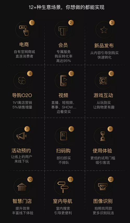 “電商”首當其沖,品牌可以搭建小程序官方商城,建立自有的營(yíng)銷(xiāo)陣地。“會(huì )員”運營(yíng)助力品牌提供差異化專(zhuān)屬會(huì )員服務(wù),購買(mǎi)轉化率直逼95%。“新品發(fā)布”和“試用體驗”等措施,使得品牌能從內容引導購買(mǎi),高效引流。而直播、賽事、邊看變買(mǎi)等“視頻”玩法,結合“游戲互動(dòng)”,極大增加了消費者的參與感。