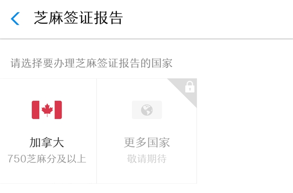 這一功能位于:支付寶 APP——芝麻信用——信用管理——信用簽證,目前列表中已出現加拿大,更多國家和地區尚待解鎖。