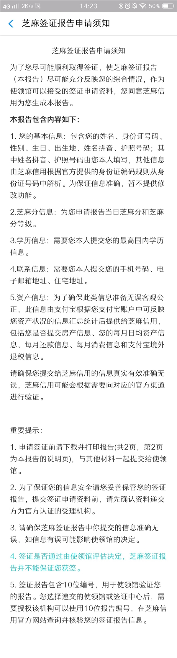 需要注意的是,支付寶強調,簽證是否通過(guò)由使領(lǐng)館評估決定,芝麻簽證報告并不能保證獲簽。