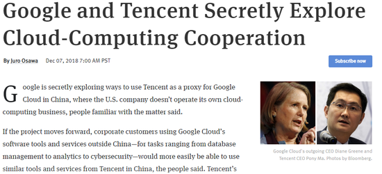 傳谷歌和騰訊云正探索在云計算方面進(jìn)行合作