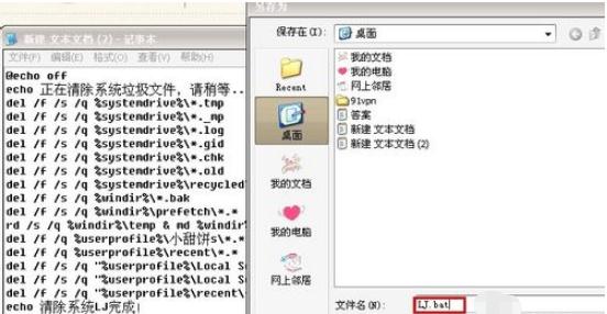 把代碼復制到一個(gè)文本文檔里面、、然后在另存為文件名修改成LJ.bat。