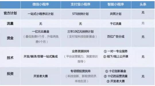 (2)小程序平臺的扶持力度:百度>微信支付寶>今日頭條