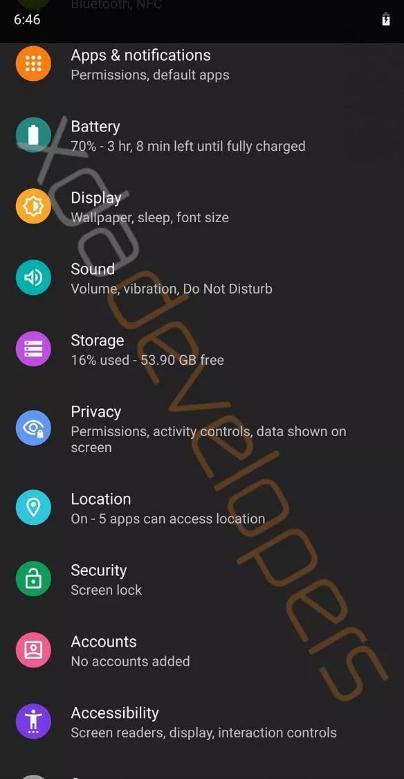 XDA 網(wǎng)站的屏幕截圖表明,安卓 10 系統將把黑暗模式擴展到更多的地方,包括設置菜單,它可能有一個(gè)設置來(lái)強制使用黑暗模式,即使在沒(méi)有內置黑暗版本的應用程序中也是如此。