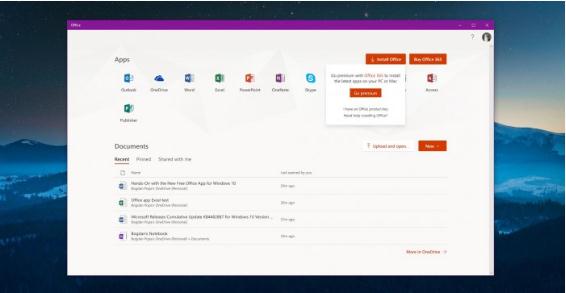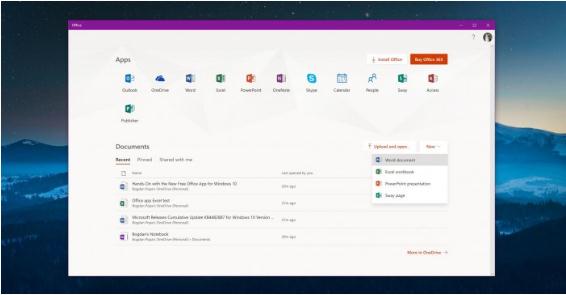 Office 有一個(gè)相當簡(jiǎn)單和干凈的界面,在啟動(dòng)之后,它的用途變得相當明顯。所有 Office 應用程序都顯示在屏幕頂部,單擊任何快捷方式都會(huì )立即打開(kāi)它們。如果您想在云中訪(fǎng)問(wèn)文檔,也可以打開(kāi) Office Online。根據設備上安裝的 Office 版本(訂閱或內部部署),單擊圖標在登錄后即可打開(kāi)正確的應用程序。