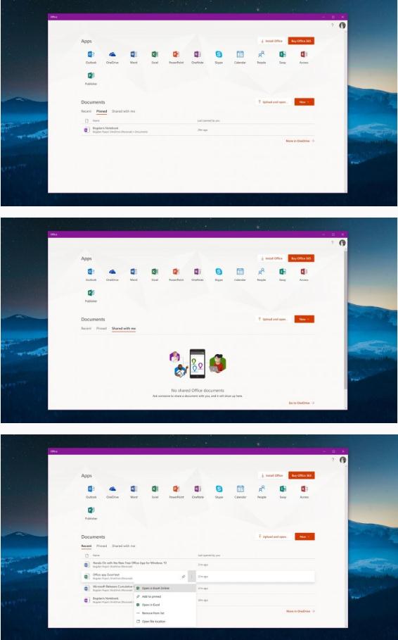 Office 屏幕下部用于快速訪(fǎng)問(wèn)您的文檔,這些文件分為三類(lèi):最近的、固定的和與我共享的。“與我共享”部分提供了對以前某個(gè)聯(lián)系人與您共享的文檔的快速訪(fǎng)問(wèn),對于企業(yè)客戶(hù)或公司內使用 Office 的客戶(hù)來(lái)說(shuō),此選項特別方便。微軟商店發(fā)布的官方描述聲稱(chēng),Office 應用程序還應該提供搜索功能,以便離線(xiàn)和在線(xiàn)查找文檔,但目前上手之后似乎還沒(méi)有發(fā)現這種功能。