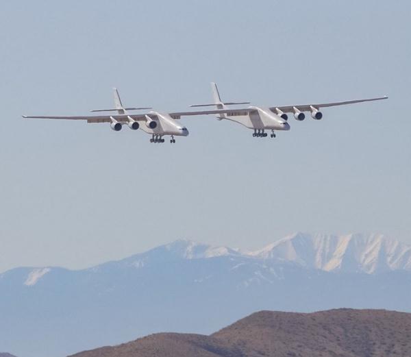這架飛機采用了雙機身設計,之后將用于運載火箭飛行到 35,000 英尺的高度,火箭點(diǎn)燃引擎并升入軌道,此次首次飛行沒(méi)有運載火箭。但該公司已經(jīng)簽署了諾斯羅普格魯曼公司,該公司計劃使用 Stratolaunch 飛機將其 Pegasus XL 火箭送入太空。