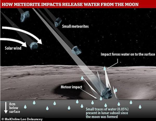 當然這是說(shuō)笑。但根據美國宇航局研究人員的一項最新觀(guān)測顯示,由于遭受強烈的隕星撞擊,月球淺地表下蘊藏的水分似乎正被“擊打”出來(lái)。研究人員指出,這些月球淺地表下隱藏的水分可能早在月球最初形成時(shí)就已經(jīng)存在了。而由于遭受?chē)乐刈矒?,月球淺地表下的水分被發(fā)掘出來(lái)并散失到太空中去。估算顯示,這種撞擊效應每年會(huì )讓月球損失大約 220 噸的水。