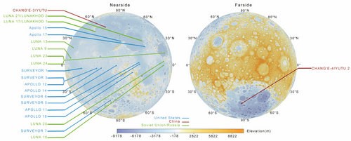 2019 年以前,人類(lèi)在 60 年來(lái)的月球探測歷程中成功實(shí)施了 20 次月面軟著(zhù)陸,全部位于朝向地球的月球正面。探測器下降軌跡和著(zhù)陸點(diǎn)位置可以通過(guò)地面設備進(jìn)行測量。
