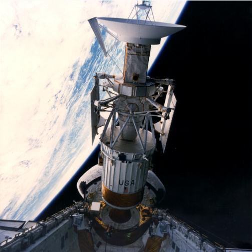 麥哲倫號于 1982 年 5 月 4 日發(fā)射升空,圖中上方可以看到探測器的高增益天線(xiàn)