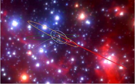 這些奇特的天體是氣體,還是恒星?這些斑點(diǎn)可能是氣體和恒星的混合體,基于天體的形狀、軌道,以及與超大質(zhì)量黑洞人馬座A*的交互作用,很可能每個(gè)G天體是兩顆雙星(彼此環(huán)繞的恒星),它們在數百萬(wàn)年前在黑洞引力作用下發(fā)生碰撞,混亂碰撞之后仍不斷溢出氣體灰塵云。