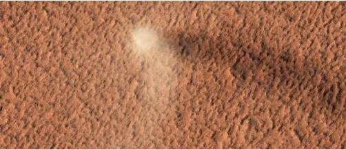 據外媒 CNET 報道,火星是一個(gè)塵土飛揚和多風(fēng)的世界。當這兩種條件同時(shí)具備時(shí),可能會(huì )導致火星“塵魔”的出現。 美國宇航局(NASA)的火星勘測軌道飛行器(MRO)近日捕捉到了其中一種正在行動(dòng)的塵魔的罕見(jiàn)畫(huà)面。亞利桑那大學(xué)的 MRO HiRise 相機團隊在周一分享了這張引人入勝的照片。