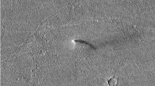MRO 團隊成員 Sharon Wilson 寫(xiě)道: “有幾張 HiRise 影像記錄了塵魔留下的痕跡,但很少能捕捉到其移動(dòng)的樣子。” 該航天器于 2019 年 10 月上旬拍攝了這張照片。