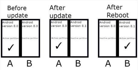 下載更新時(shí),更新程序會(huì )在后臺修補不活動(dòng)的一組分區(一個(gè)“插槽”)。一旦將更新完成應用到非活動(dòng)插槽后,系統將提示用戶(hù)重新啟動(dòng)設備。用戶(hù)重新啟動(dòng)設備時(shí),非活動(dòng)插槽將與活動(dòng)插槽交換位置,從而完成更新過(guò)程。 如果引導新更新的插槽存在問(wèn)題,則保留先前處于活動(dòng)狀態(tài)的插槽。下一次更新更新時(shí),將重復此過(guò)程。