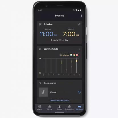 另外,谷歌還為鬧鐘應用帶入了一個(gè)睡覺(jué)模式。根據谷歌在博客帖子中介紹了解到,當用戶(hù)入睡的時(shí)候,手機會(huì )進(jìn)入靜音狀態(tài)并限制感染,如果用戶(hù)在本該睡覺(jué)的時(shí)間還在玩手機那么該模式將會(huì )提供一張顯示用戶(hù)玩手機的時(shí)間和在此期間使用的應用的信息截圖。