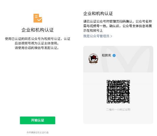 企業(yè)藍V認證,門(mén)檻非常低,只需要公眾號認證,然后視頻號名稱(chēng)和公眾號一致,即可關(guān)聯(lián)公眾號進(jìn)行認證,點(diǎn)擊企業(yè)認證,然后管理員掃碼關(guān)聯(lián)需要同步的公眾號認證信息即可,每年可以修改2次認證。
