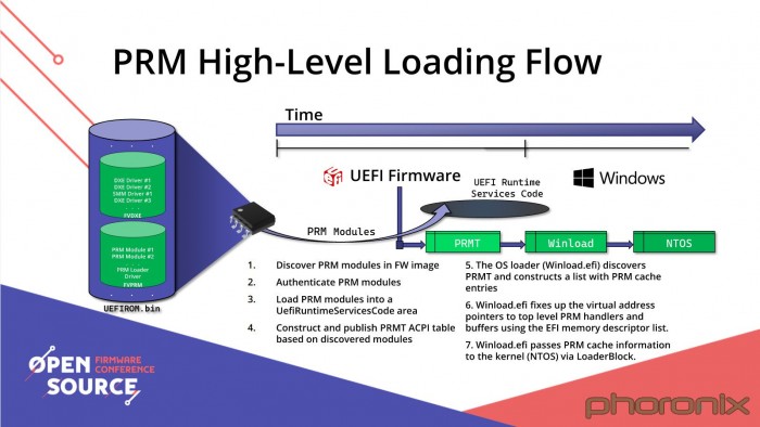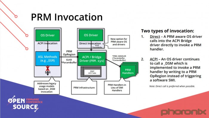通過(guò) TianoCore 的 edk2 過(guò)渡 PlatformRuntimeMechanisms 分支,穩定了 PRM 的開(kāi)源通用基礎結構實(shí)現。還提供了開(kāi)放源代碼的示例 PRM 模塊以及文檔。實(shí)際的 PRM 規范雖然仍待 ACPI 和 UEFI 工作組確定,但聽(tīng)起來(lái)將在 2021 年敲定。最新的 Windows Insider 版本已經(jīng)提供了初步的支持,而 Linux 對 PRM 的支持將在 PRM 規范發(fā)布之后部署,并且內核代碼經(jīng)歷了通常的上游審查過(guò)程。