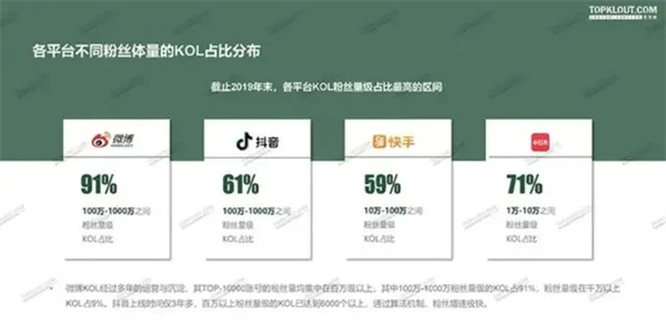 首先,腰部KOC把控著(zhù)小紅書(shū)絕大部分聲音,導致小紅書(shū)無(wú)法孵化出薇婭、李佳琦、辛巴、羅永浩這種頂流KOL。據統計,微博和抖音KOL的粉絲量級都是100-1000萬(wàn)之間的級別為主;快手KOL以10-100萬(wàn)之間的粉絲量級為主。