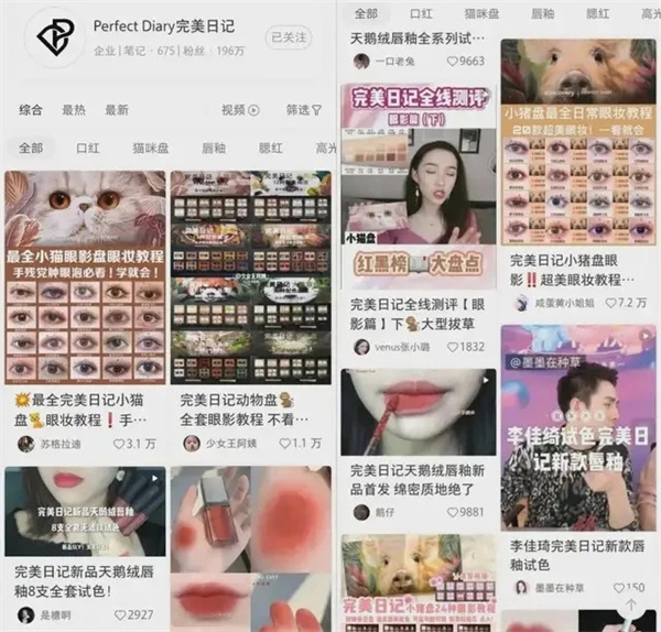 對于品牌來(lái)說(shuō),去中心化的模式幫助小紅書(shū)積累了大量中腰部的KOC,便于品牌進(jìn)行冷啟動(dòng)。小紅書(shū)最成功的案例就是完美日記。這個(gè)國產(chǎn)品牌在初期靠著(zhù)小紅書(shū)上的大量投放,成功樹(shù)立起高性?xún)r(jià)比、國貨之光的品牌形象。自2017年底開(kāi)始,到今年4月,相關(guān)筆記超過(guò)了31萬(wàn)篇。小紅書(shū)的價(jià)值也被逸仙電商創(chuàng )始人稱(chēng)為“無(wú)可比擬的”。同樣靠小紅書(shū)實(shí)現冷啟動(dòng)的國產(chǎn)品牌還有元氣森林、鐘薛高、小麥歐耶等等