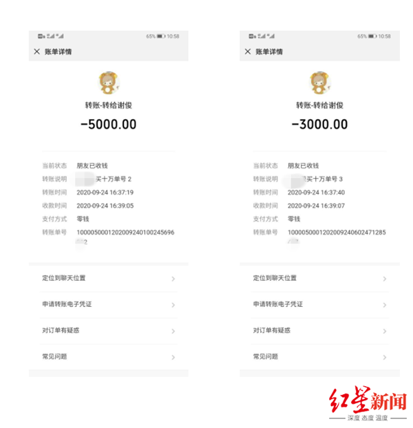 在采訪(fǎng)中記者了解到,當時(shí)商家購買(mǎi)單號的時(shí)候并沒(méi)有簽合同,僅有口頭承諾和聊天、付款記錄,收款人名為謝俊。