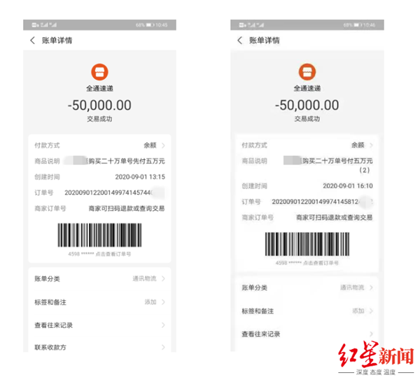 不過(guò)有商戶(hù)提供給紅星資本局的轉賬記錄顯示,部分收款人為“全通速遞”。對此謝銳稱(chēng),“我們公司的注冊名稱(chēng)叫義烏市全通快遞有限公司,‘全通速遞’是黃牛注冊的賬號,只是為了收款方便,可以改成任何名字來(lái)收款。”
