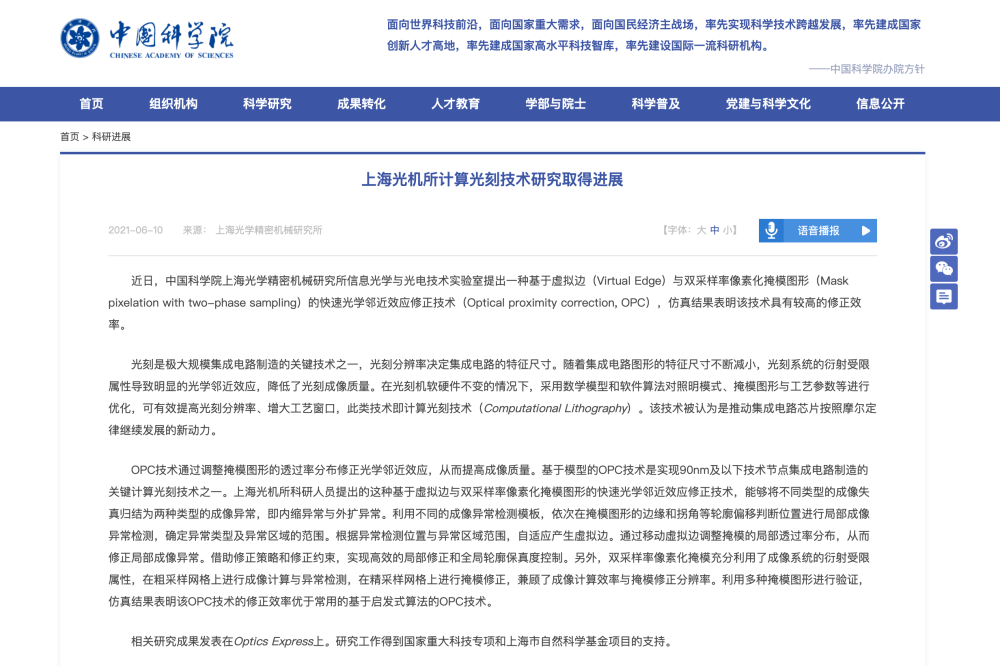 中國科學(xué)院:上海光機所計算光刻技術(shù)研究取得進(jìn)展