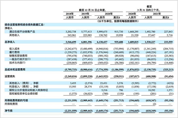 其凈虧損從2019年的18.73億元增長(cháng)到2020年的31.77億元。今年截至3月31日的前三個(gè)月,凈虧損從去年同期的2.45億元增至13.85億元。