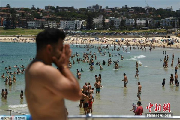 大批民眾前往沙灘戲水降溫。