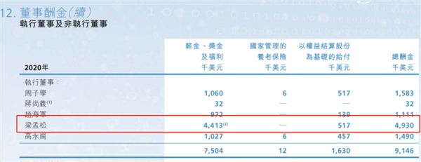 對比2019年,梁孟松“僅”拿到了34.1萬(wàn)美元酬金。