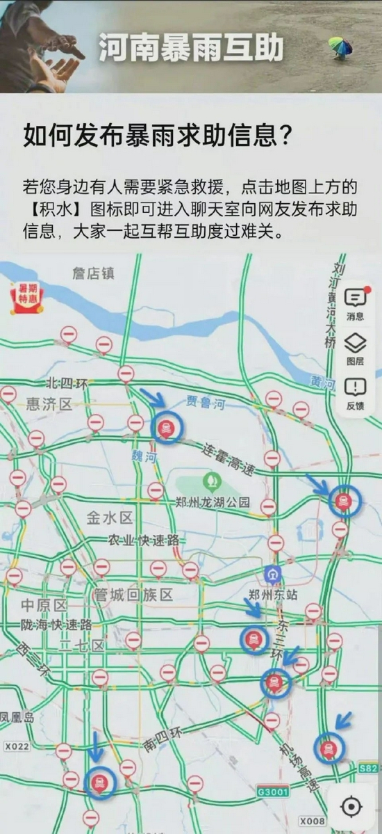 21日上午,高德地圖再次升級該服務(wù),用戶(hù)發(fā)布互助消息時(shí)可同時(shí)發(fā)布具體位置,實(shí)用性進(jìn)一步提高。當天中午,百度地圖宣布上線(xiàn)“河南救援”功能,同樣支持上傳求助信息。兩款產(chǎn)品的官方微博下,網(wǎng)友紛紛留言感謝工程師們的辛勤勞動(dòng)。