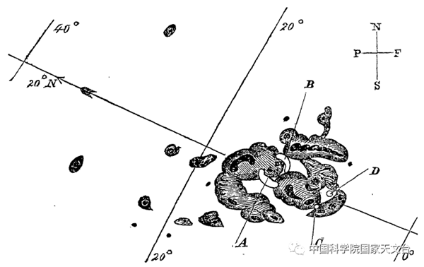 圖1. 卡林頓在自家天文臺上觀(guān)測到的太陽(yáng)輻射增強(圖源:Carrington R. C., 1859, MNRAS, 20, 13)