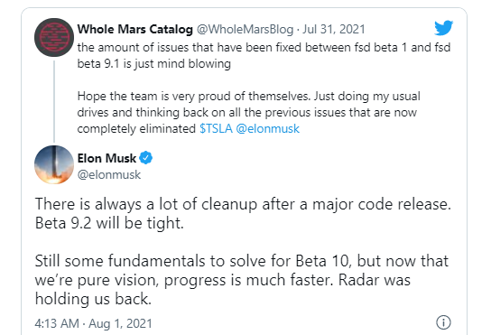 馬斯克還發(fā)推文稱(chēng),他剛剛駕駛 FSD Beta 9.3 從帕薩迪納到洛杉磯國際機場(chǎng),這次旅程"大有改進(jìn)!"在本月初,馬斯克說(shuō)特斯拉將每?jì)芍茉诩又輹r(shí)間午夜發(fā)布新版本的 FSD。然后他承諾 Beta 9.2 版將是"緊密的",他說(shuō)雷達阻礙了公司的發(fā)展,現在已經(jīng)完全接受了純粹的愿景,進(jìn)展會(huì )更快。