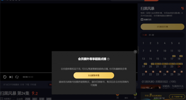 官網(wǎng)介紹,超前點(diǎn)播單集購買(mǎi)價(jià)格在3元一集,并且需逐集依次按順序解鎖。