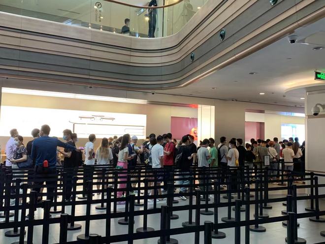 蘋(píng)果南京東路店門(mén)口聚集了大量收新款 iPhone 的黃牛,與 iPhone 12 發(fā)售時(shí)的冷清形成了鮮明對比。