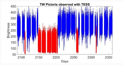 研究小組在白矮星雙星系統 TW Pictoris 中觀(guān)察到了這一現象,該系統距離地球約 1400 光年。TW Pictoris 由一個(gè)白矮星組成,它從周?chē)奈e盤(pán)中獲得食物,吸積盤(pán)的燃料是來(lái)自其較小伴星的氫氣和氦氣。隨著(zhù)白矮星的進(jìn)食或吸積,它變得更加明亮。利用 TESS 提供的精確觀(guān)測細節,研究團隊看到了在如此短的時(shí)間尺度內,在吸積白矮星中從未見(jiàn)過(guò)的亮度突然下降和上升。