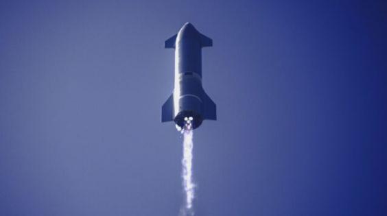 圖2:這艘星際飛船原型在進(jìn)行亞軌道試飛中只使用三個(gè)猛禽發(fā)動(dòng)機提供動(dòng)力
