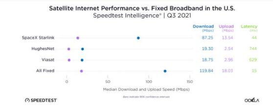 根據數據服務(wù)公司 Ookla(Speedtest)的最新測速報告,星鏈在美國的中位下載速度從今年二季度的 97.23Mbps 下降至三季度的 87.25Mbps。關(guān)于降速的原因,合理的推測是用戶(hù)數量的顯著(zhù)增加,超過(guò)了服務(wù)能力的提升。仍需說(shuō)明的是,已經(jīng)在近地軌道上部署千余顆衛星的星鏈依然是速度最快的服務(wù)商。