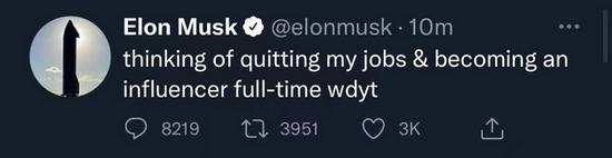 去年 12 月初,熱愛(ài)社交的他在 Twitter 上表示,自己正考慮辭職做一名全職網(wǎng)紅,并公開(kāi)詢(xún)問(wèn)網(wǎng)友的意見(jiàn)。