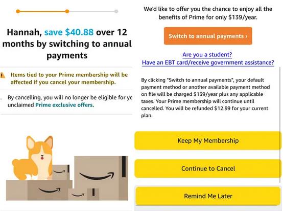 ▲ 提示用戶(hù)不要放棄 Prime 會(huì )員