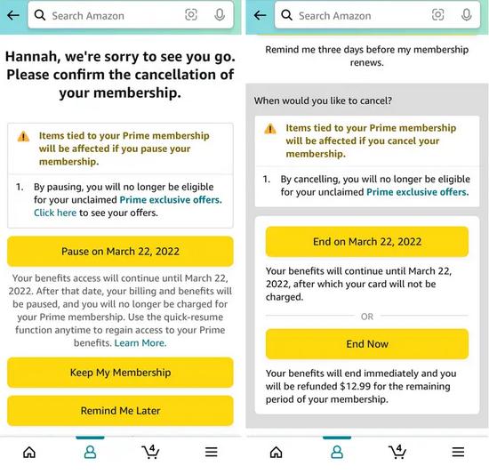 繁雜的過(guò)程,是亞馬遜利用晦澀的用戶(hù)界面設計,阻止用戶(hù)取消 Prime 會(huì )員的一個(gè)“范例”。