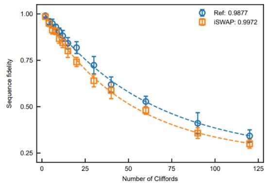 達摩院量子實(shí)驗室還在 fluxonium 上驗證了自研的超導量子芯片整體計算性能的優(yōu)化方案,包括針對超導架構的單比特門(mén)通用優(yōu)化編譯方案,針對超導芯片上的另一種原生操控 SQiSW 門(mén)的即時(shí)最優(yōu)編譯方案等。該優(yōu)化方案可以大幅提升量子芯片的整體性能指標。