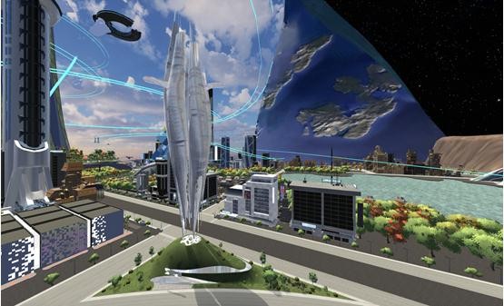 “我理解的元宇宙應該是一個(gè)文化聚集場(chǎng)所,它應該有多種的空間和元素在這里發(fā)生。我們的設想是它是一個(gè)飄動(dòng)著(zhù)的建筑,建筑的底座在水邊的小山丘,建筑漂浮在空中,并且這個(gè)建筑是可以生長(cháng)的,水是它的一種生長(cháng)的能量。”