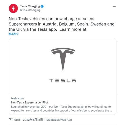美國當地時(shí)間周三,電動(dòng)汽車(chē)制造商特斯拉通過(guò)推特官方賬號宣布,其針對非特斯拉汽車(chē)的超級充電站網(wǎng)絡(luò )開(kāi)放試點(diǎn)計劃的規模將繼續擴大,囊括更多歐洲國家,包括英國、西班牙、瑞典、比利時(shí)和奧地利等。