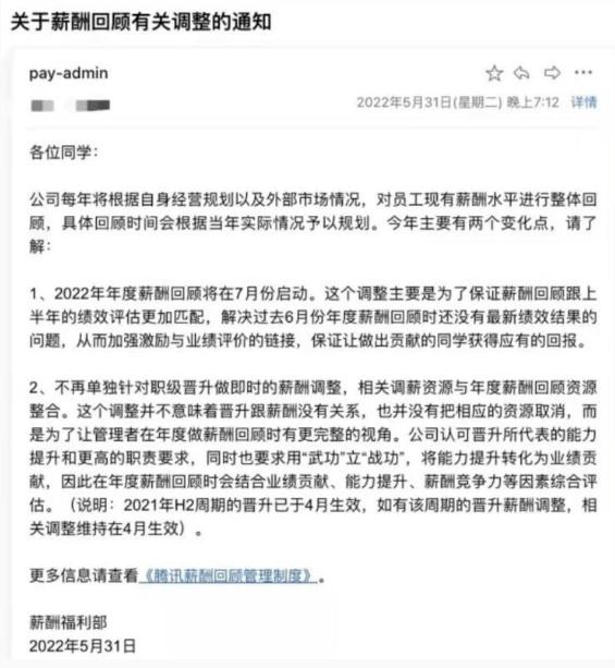 據了解,薪資回顧是騰訊采用的年度薪酬評定機制。