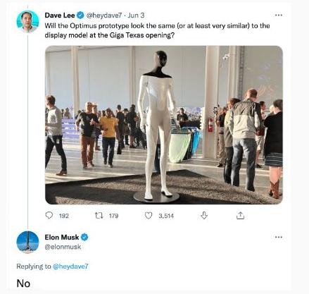 但對于有人向他詢(xún)問(wèn),即將公布的 Optimus 是否與之前展示的相同時(shí),馬斯克給了否定的答案。