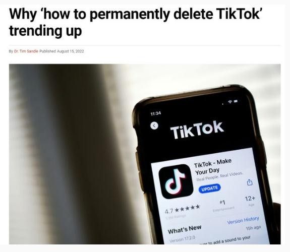羅根的播客節目引發(fā)了人們的關(guān)注。美國一家網(wǎng)絡(luò )信息公司 VPNOverview 發(fā)布報告,稱(chēng)受羅根播客的影響,互聯(lián)網(wǎng)上“如何永久刪除 TikTok”的詞條搜索量增加 140%,僅 7 月份搜索量便超過(guò) 5.6 萬(wàn)次。